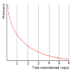 A typical graph of the forgetting curve purports to show that humans tend to halve their memory of newly learned knowledge in a matter of days.